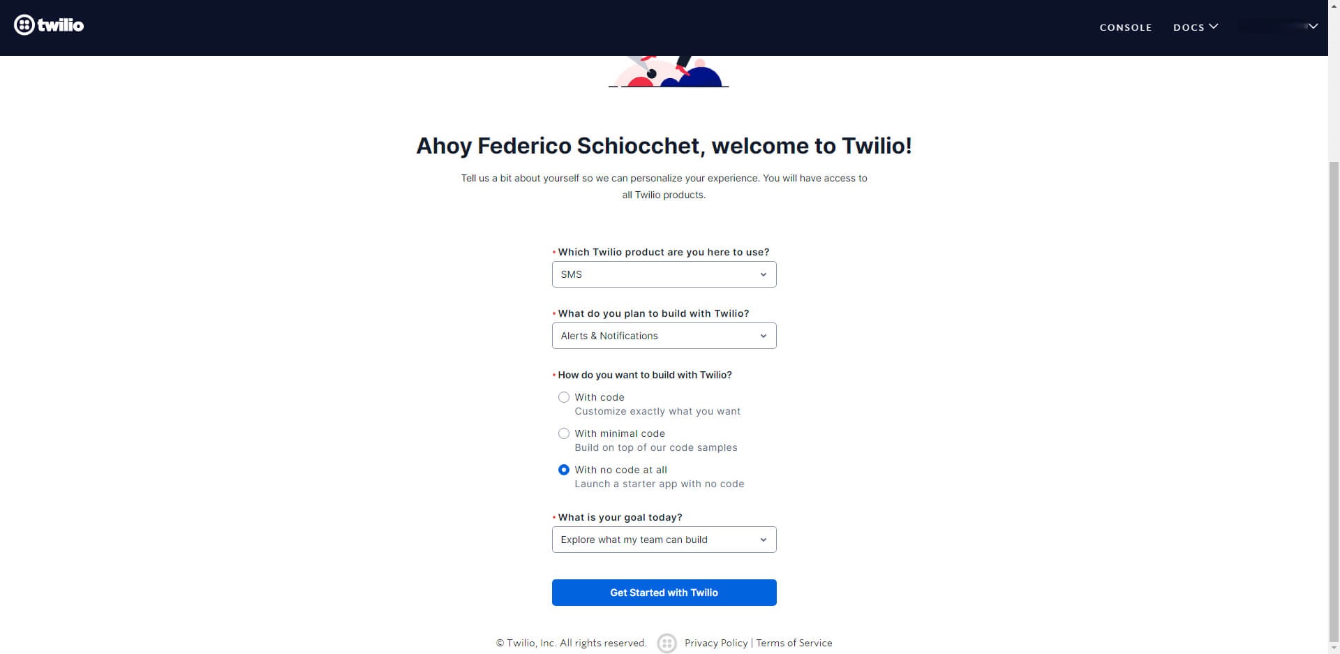 Create a new integration by clicking Start a Zapier Integration, or visit https://developer.zapier.com/app/new. Fill in all required fields, like name and description, and click Create, you can enter any text you want, but keep the name of the app in mind because you will need it later.