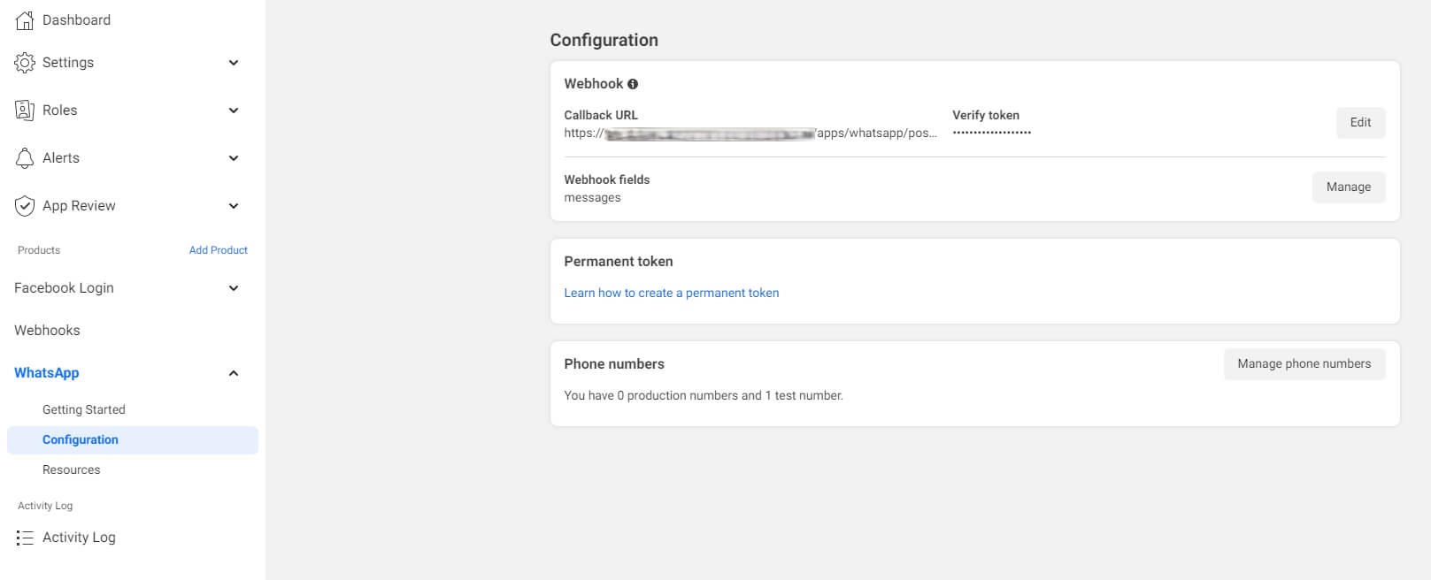 From the left menu click Settings and development > Basic configuration and complete the server configuration (服务器配置(已启用).